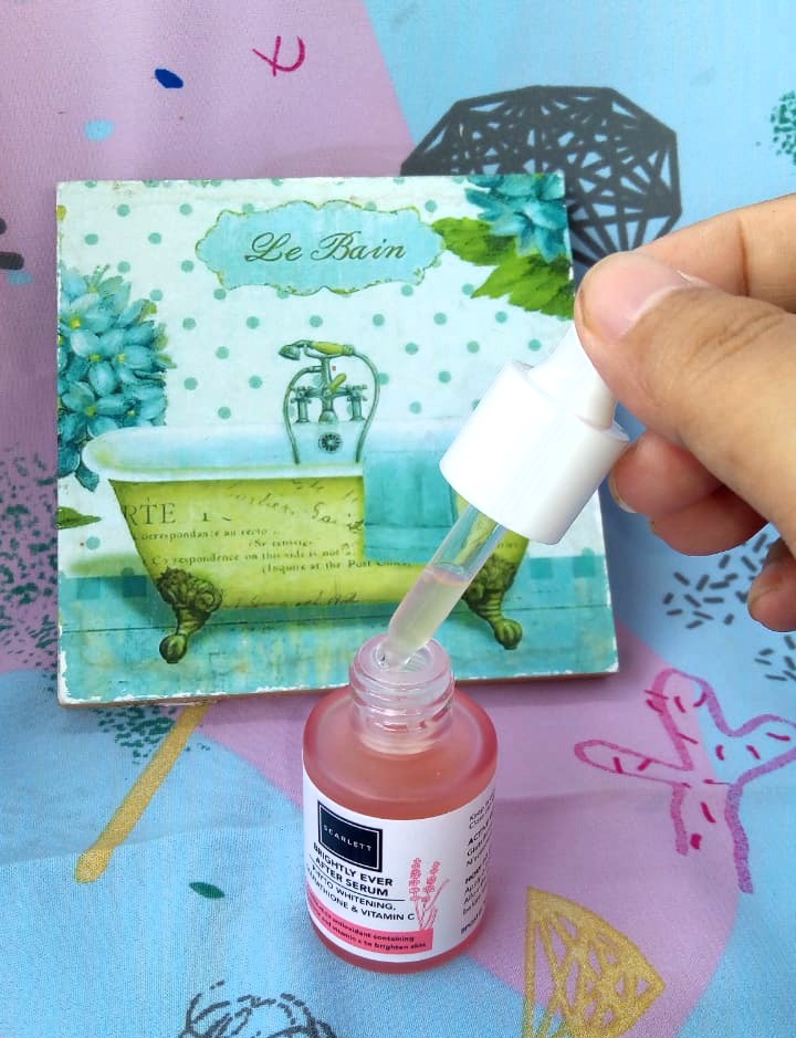 Brightly Ever After Serum Scarlet Whitening ini bisa digunakan untuk pagi dan malam. Aku pakai produk ini selama semingguan. Dengan menggunakannya secara teratur, wajah jadi lebih cerah, glowing, dan bisa menghilangkan kerutan. Kandungan Niacinamide dapat membantu aku untuk meminimalisir jerawat dan komedo.